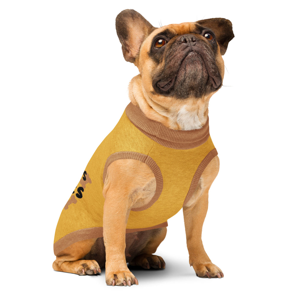 Give your pup the cutest winter upgrade with our “All I Want Is Treats” knitted pet sweater — designed for dogs who proudly wear their priorities! Featuring bold back text and a playful dog-bone patterned background, this cozy sweater comes in a warm brown and mustard color combo that looks stylish on all fur types.