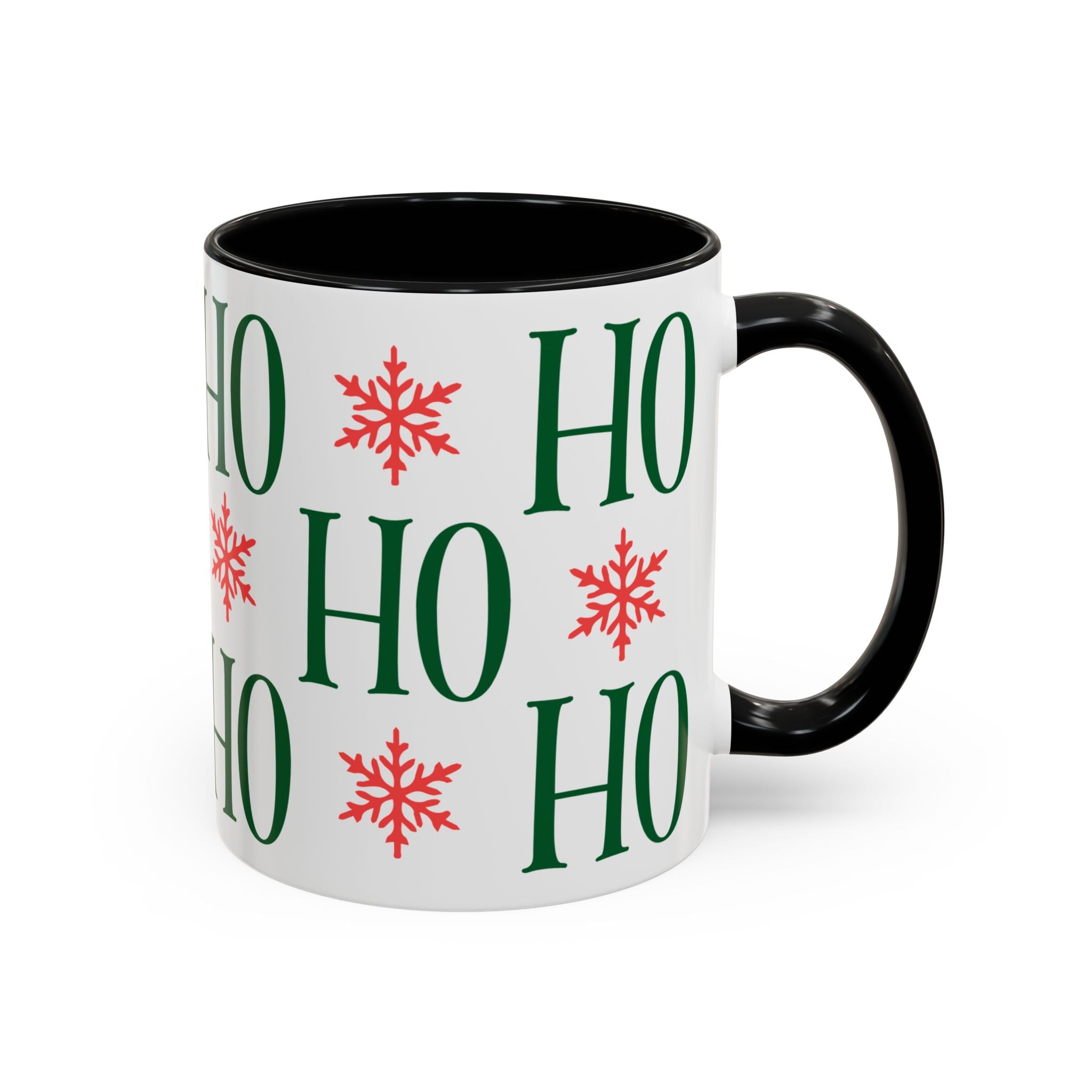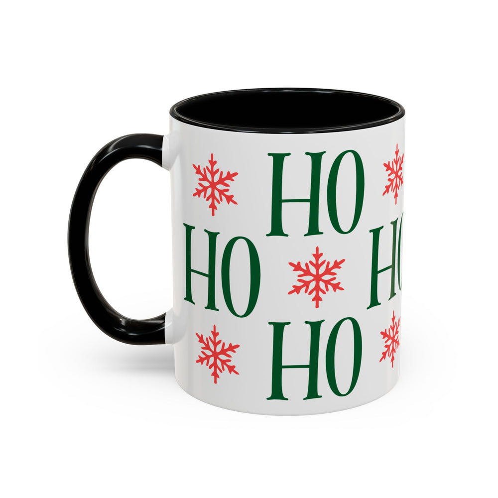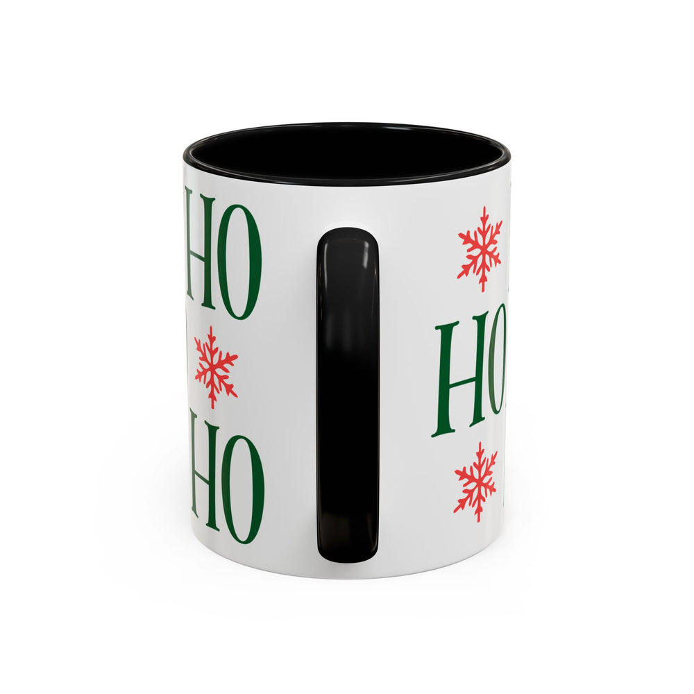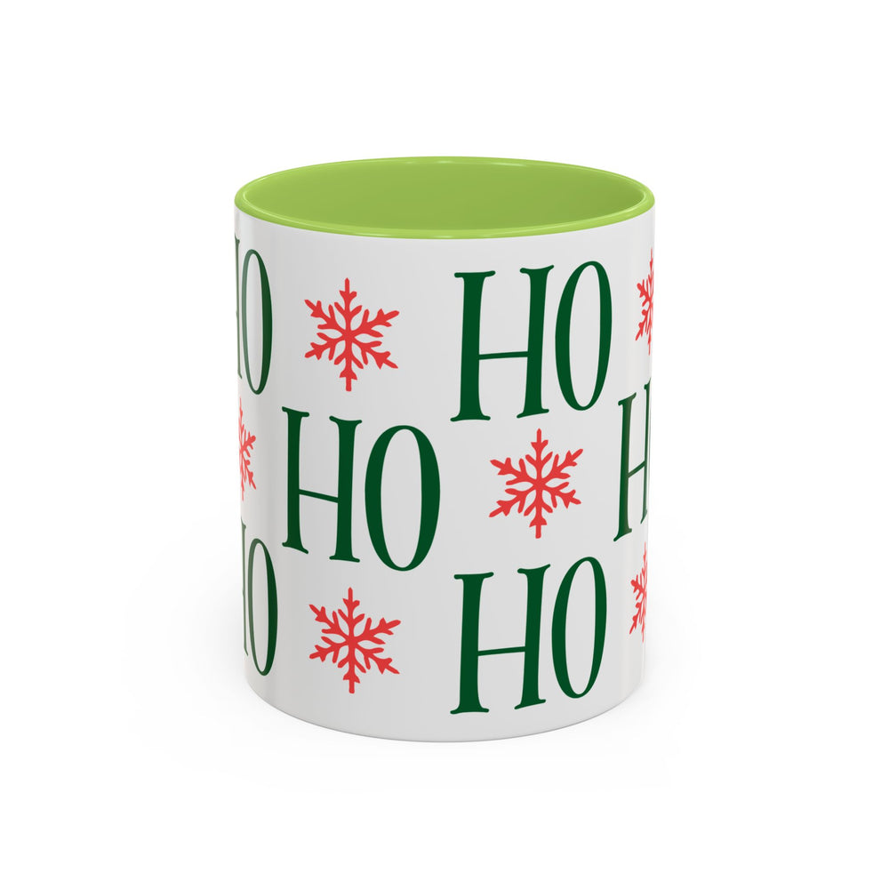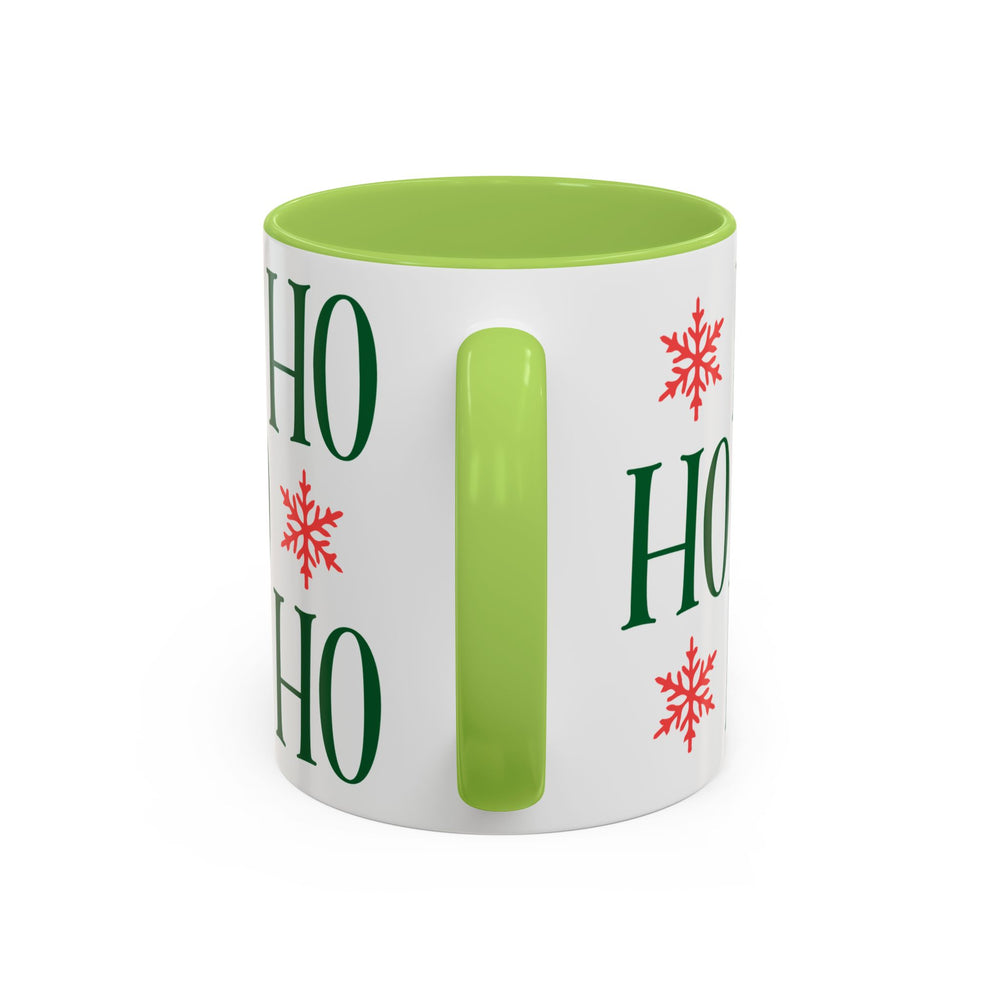HO HO HO Christmas Mug – Green Holiday Typography Mug with Snowflakes | Cute Festive Coffee Cup for Winter & Gift Giving