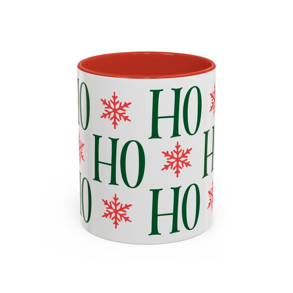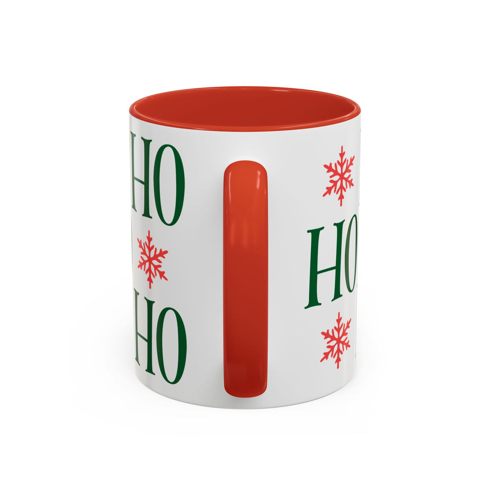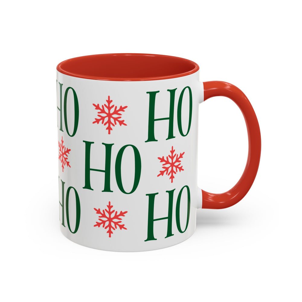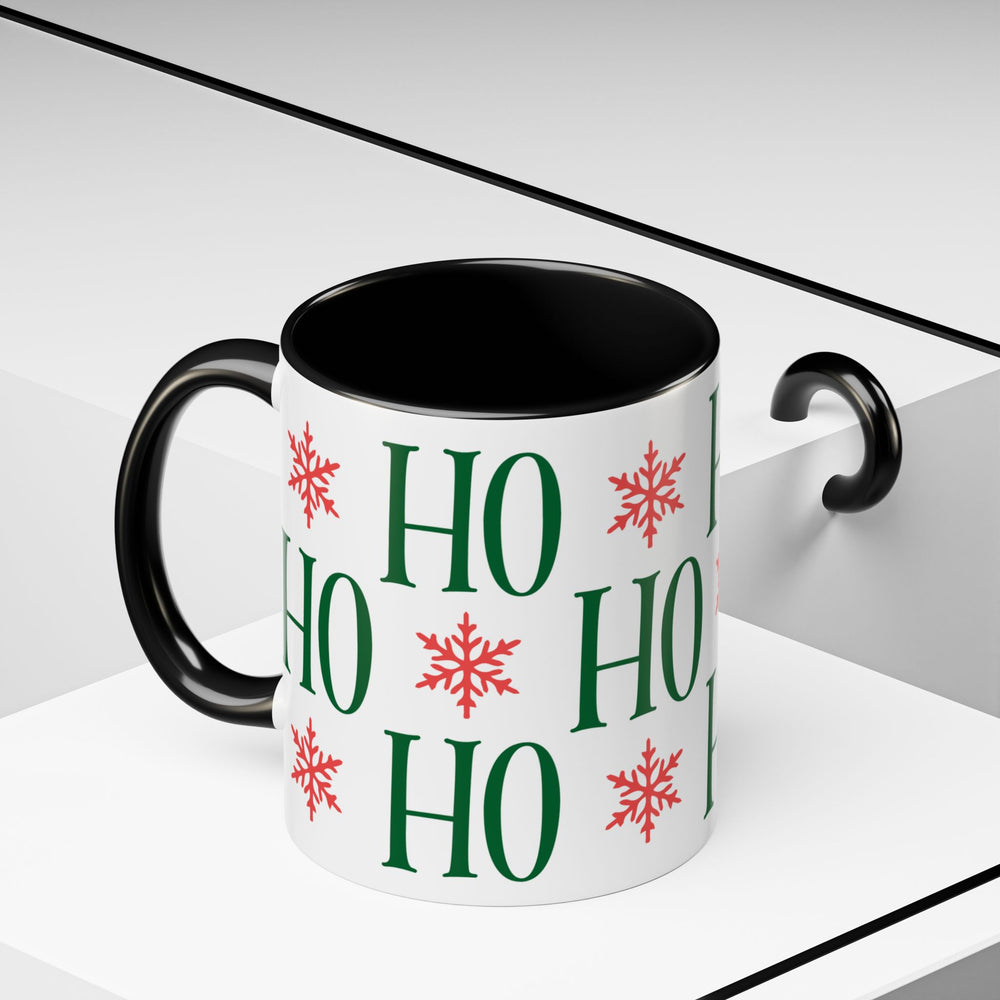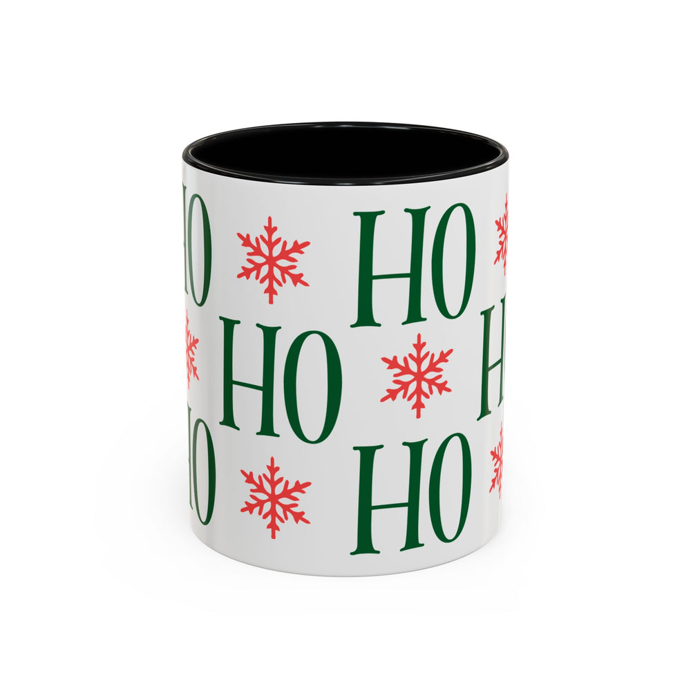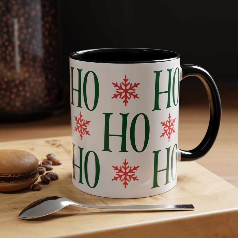 HO HO HO Christmas Mug – Green Holiday Typography Mug with Snowflakes | Cute Festive Coffee Cup for Winter & Gift Giving