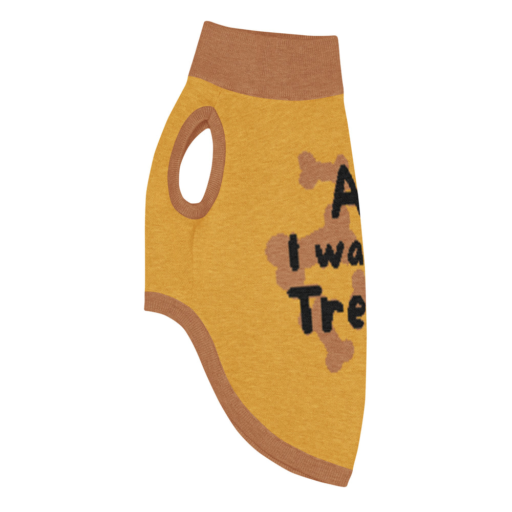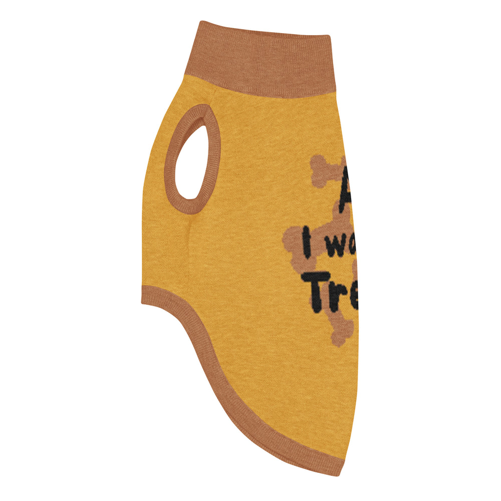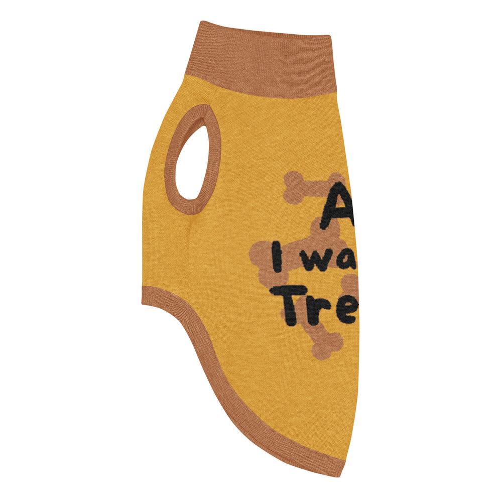 "All I Want Is Treats" Knitted Dog Sweater | Brown & Mustard Pet Pullover