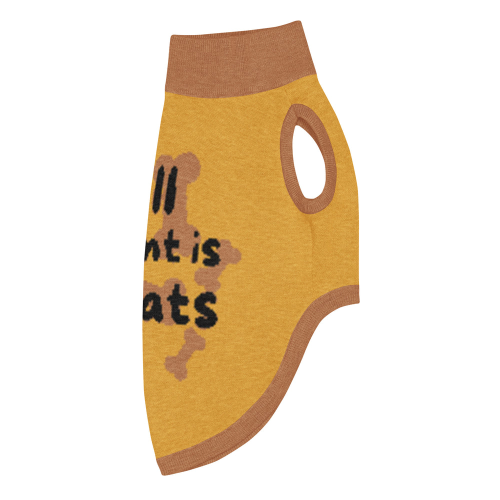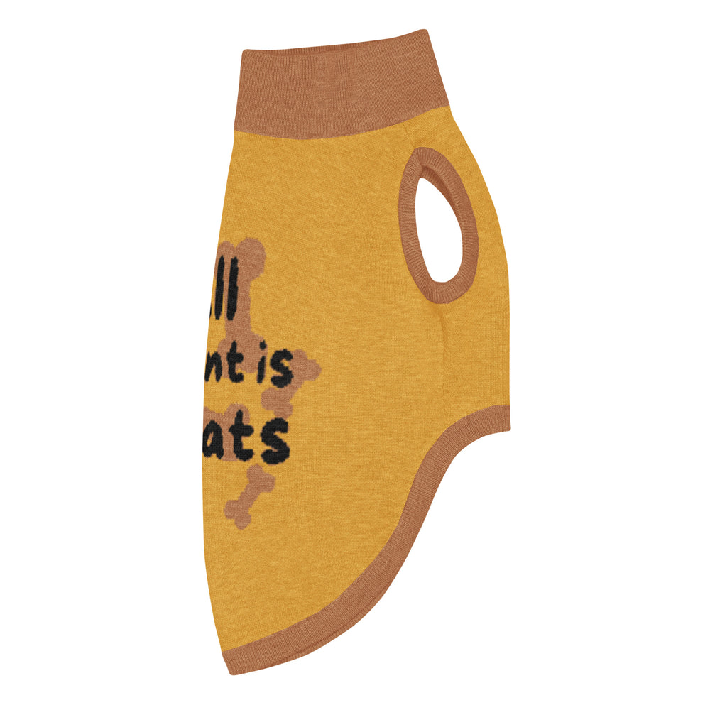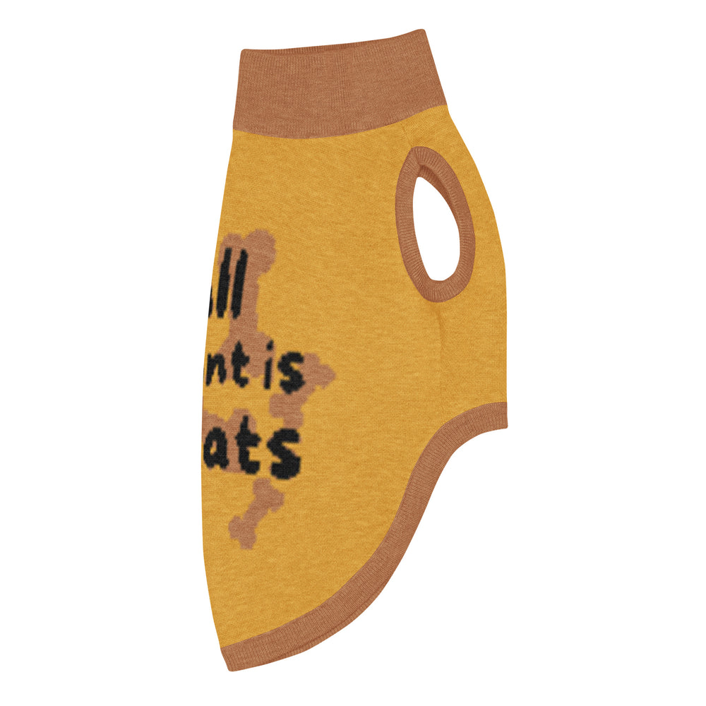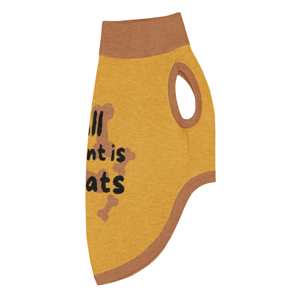 "All I Want Is Treats" Knitted Dog Sweater | Brown & Mustard Pet Pullover