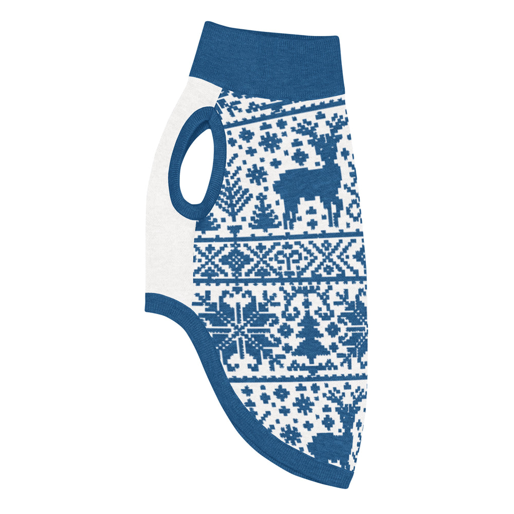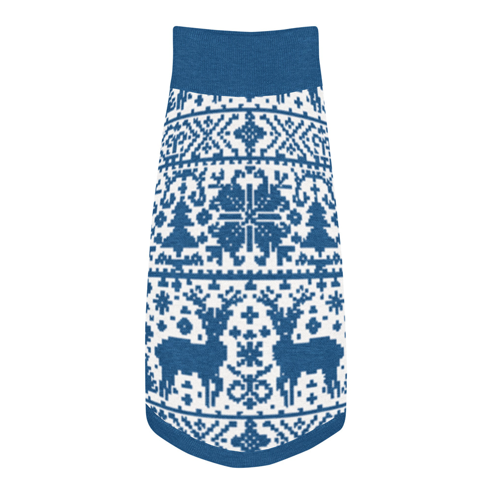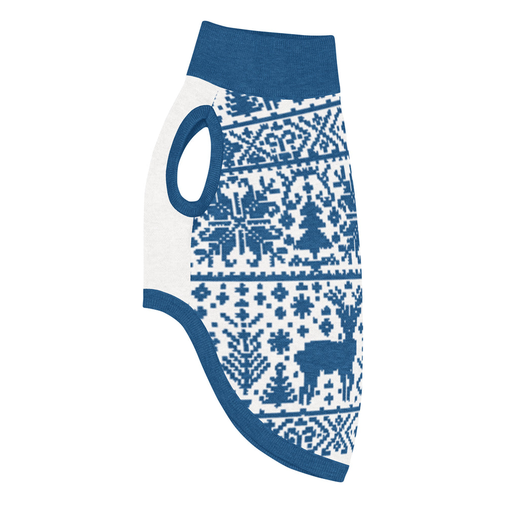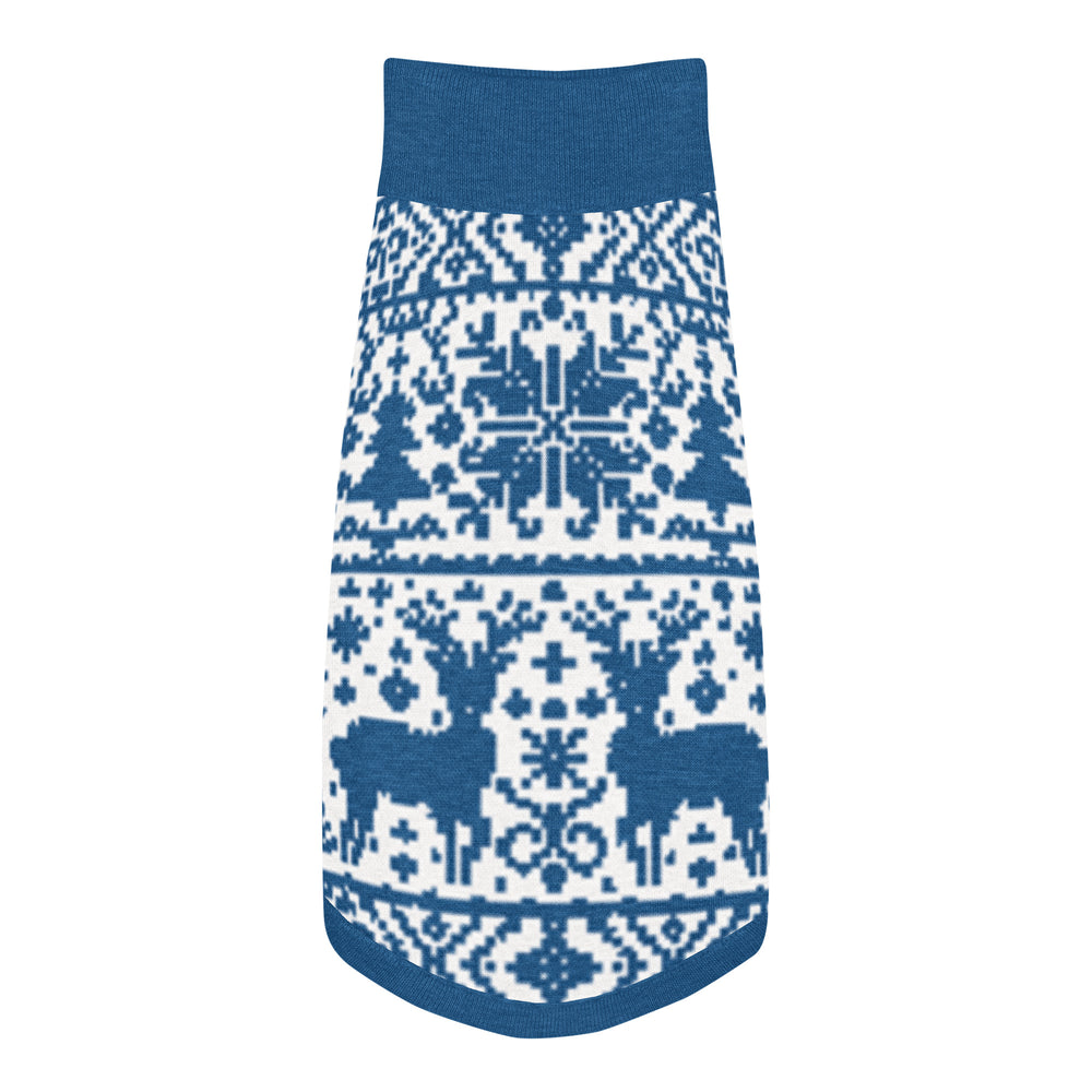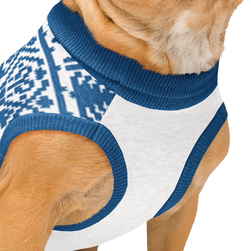 Blue & White Winter Pattern Dog Sweater | Nordic Snowflake Pet Knitwear Back-print