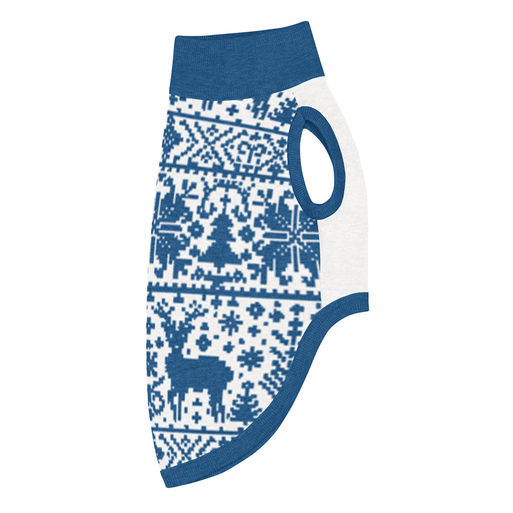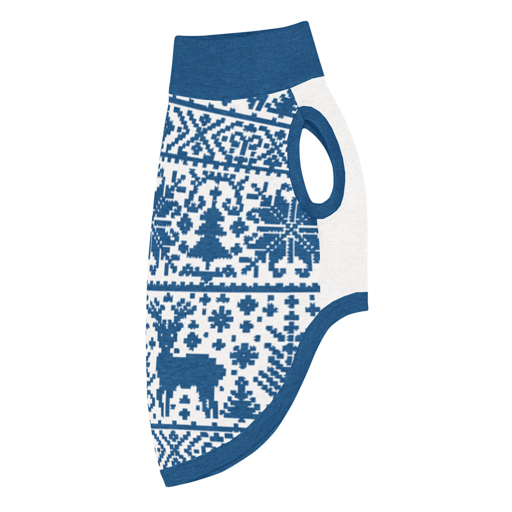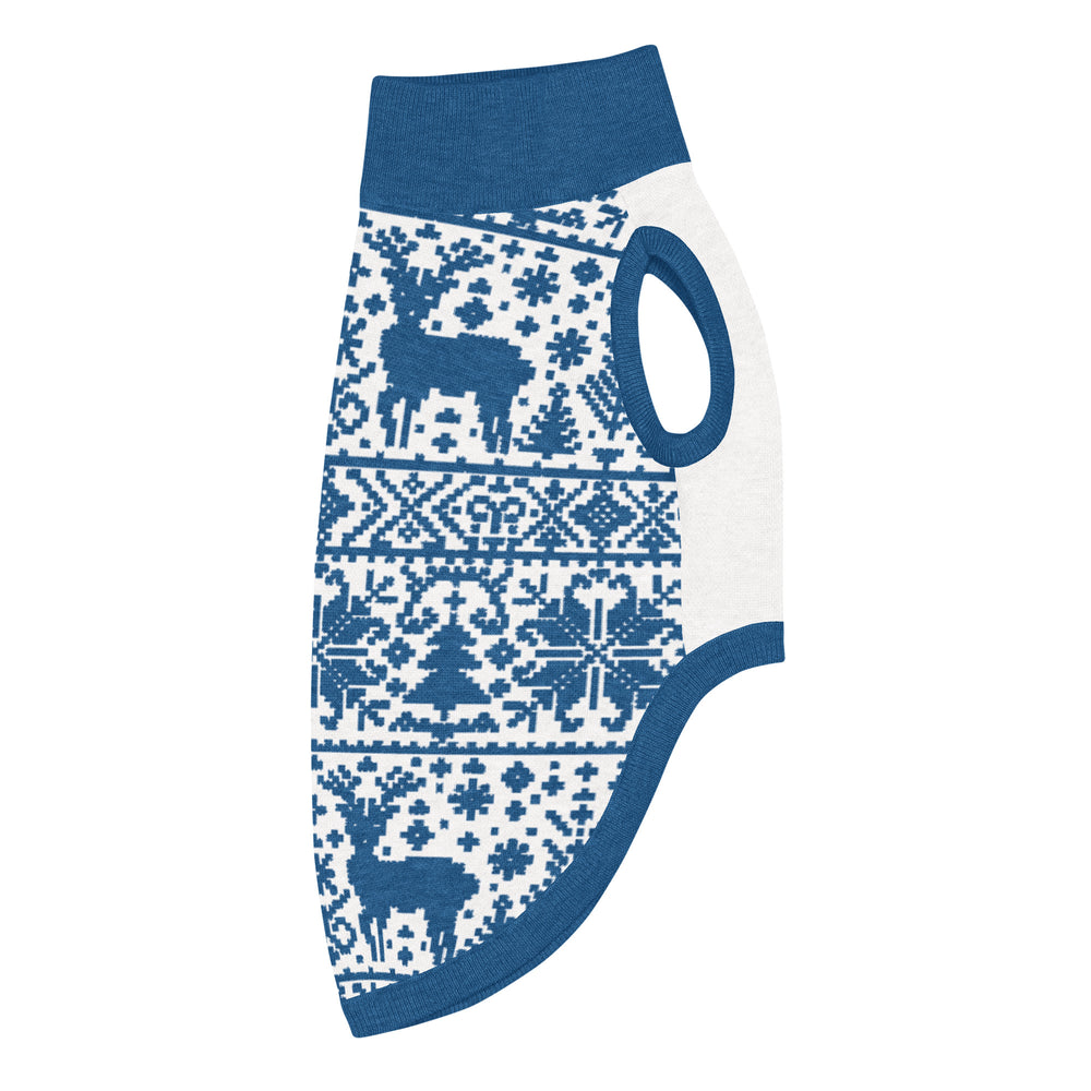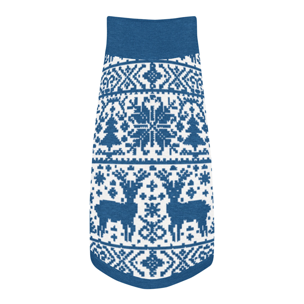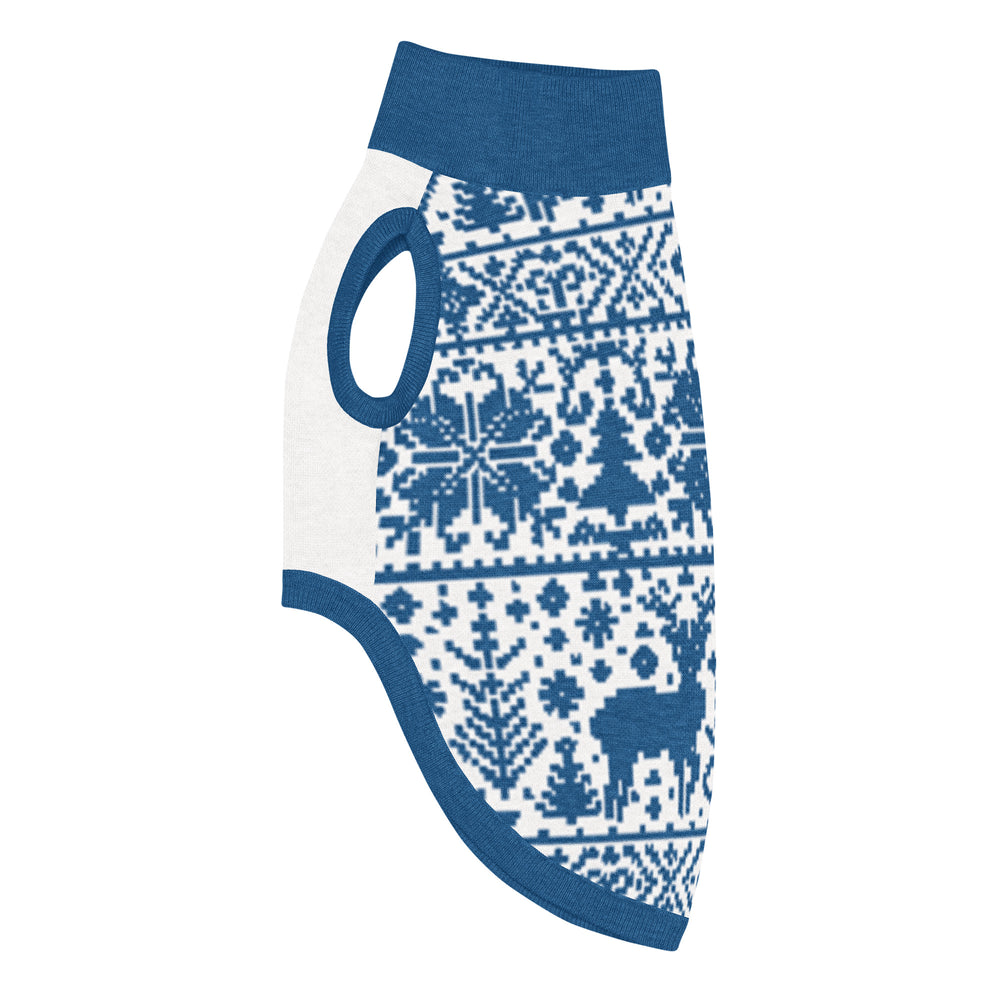 Blue & White Winter Pattern Dog Sweater | Nordic Snowflake Pet Knitwear Back-print