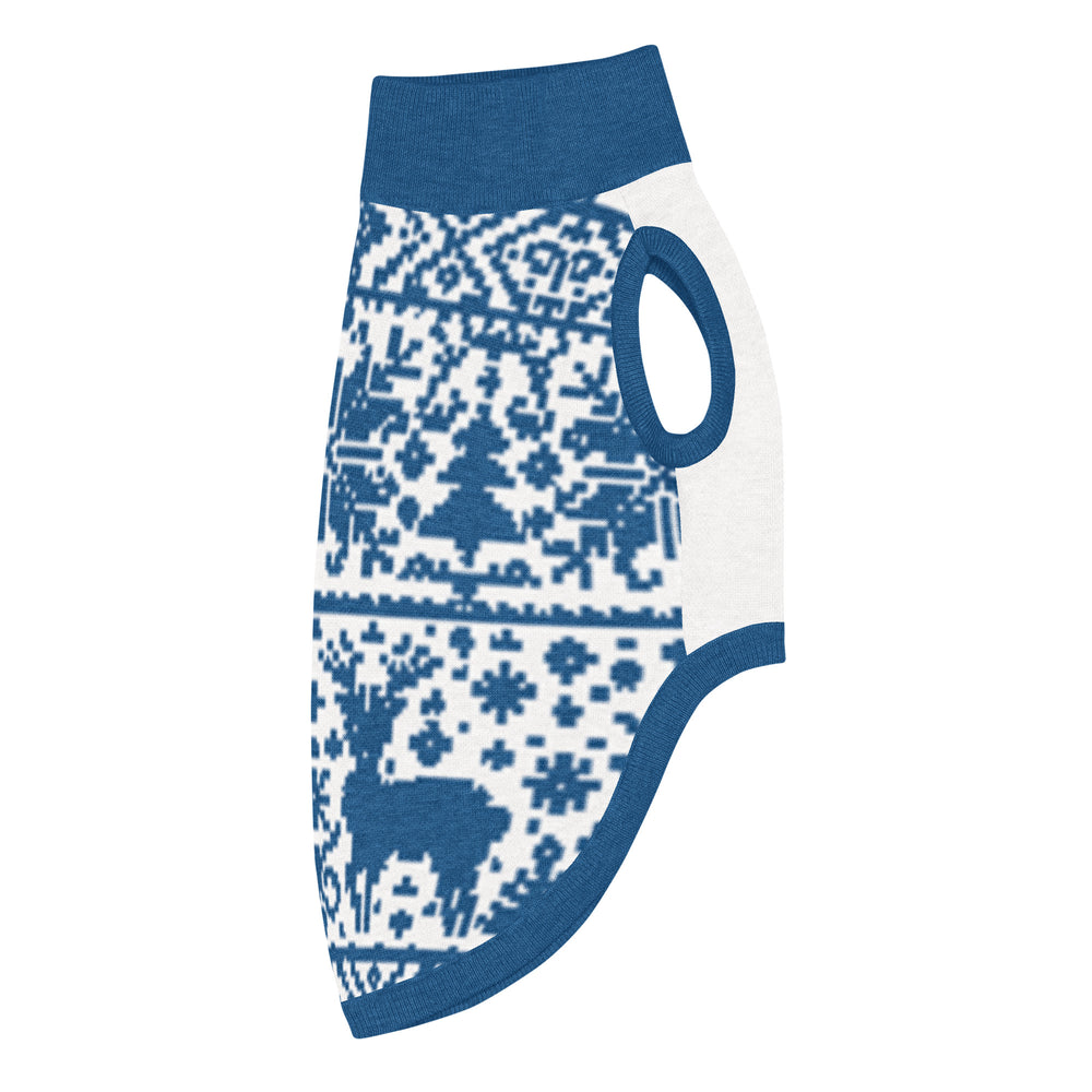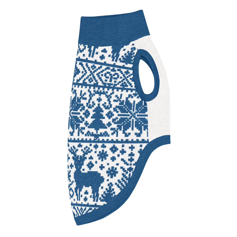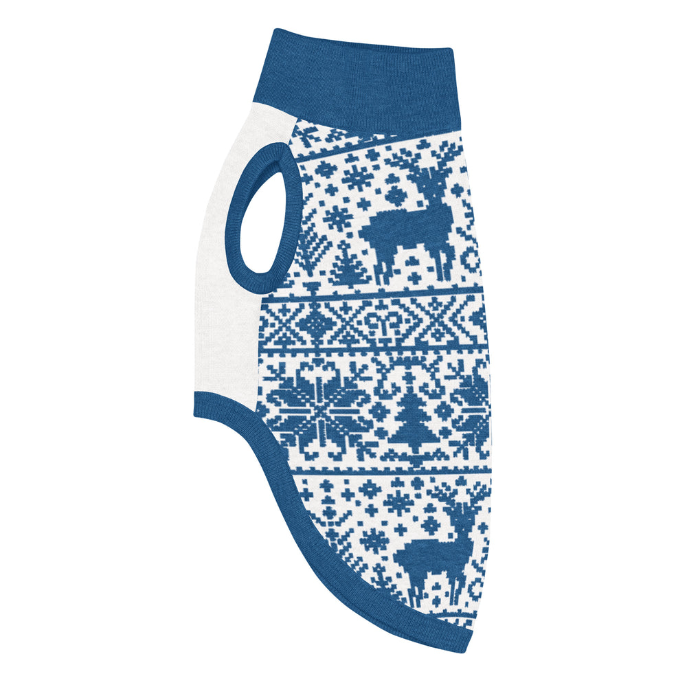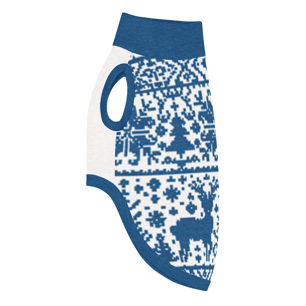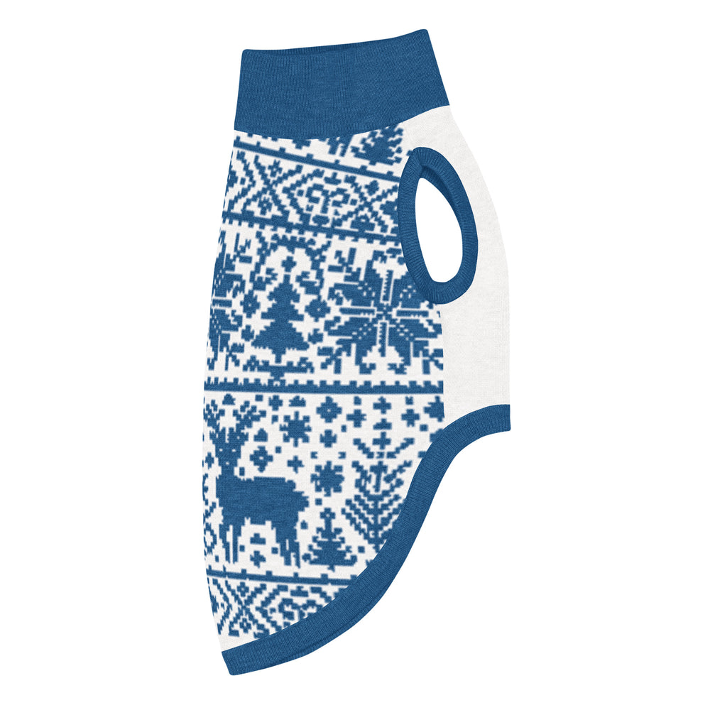 Blue & White Winter Pattern Dog Sweater | Nordic Snowflake Pet Knitwear Back-print