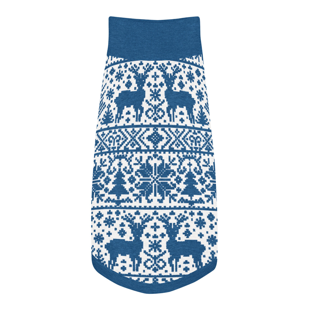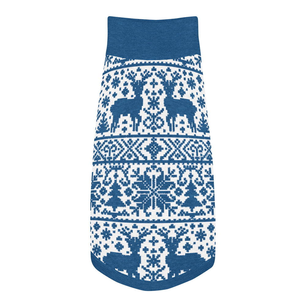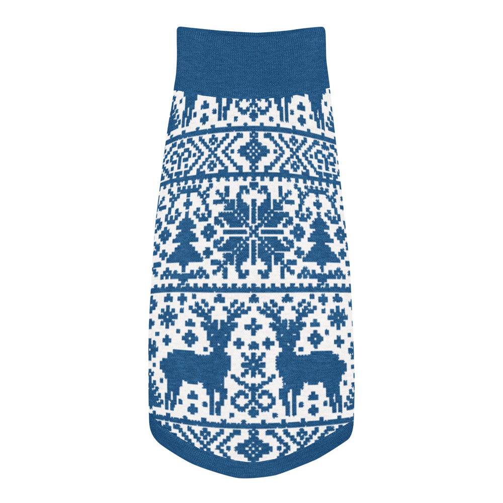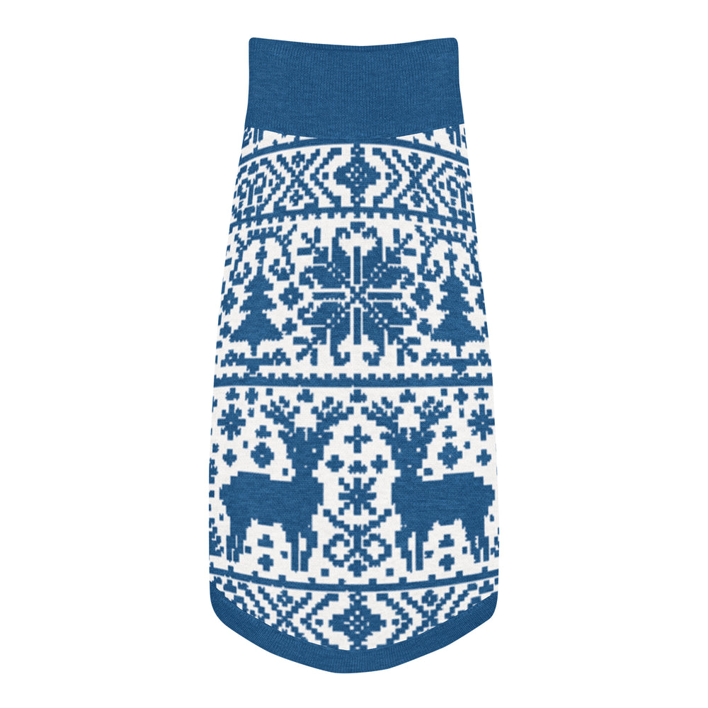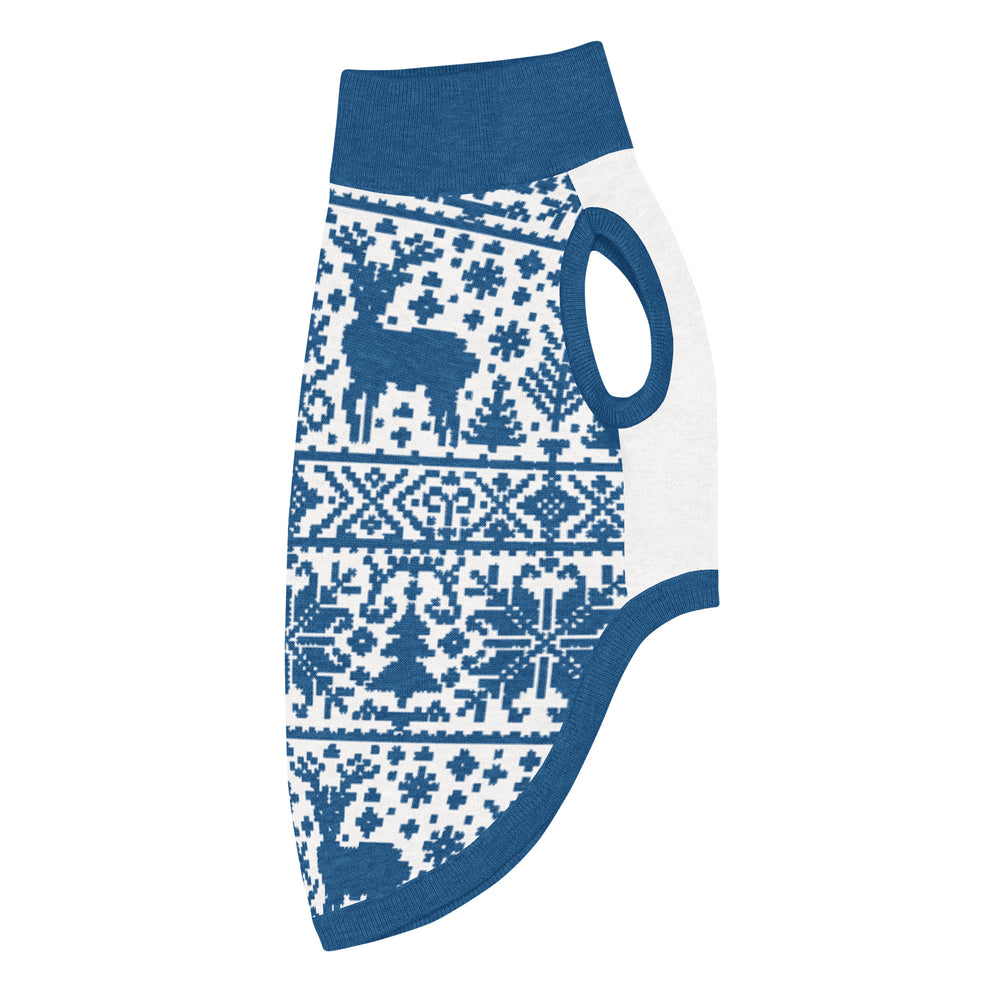 Blue & White Winter Pattern Dog Sweater | Nordic Snowflake Pet Knitwear Back-print