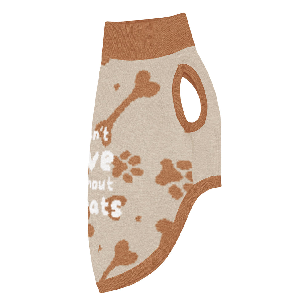 Let your pup’s personality shine with our “Can’t Live Without Treats” knitted pet sweater — the perfect winter essential for dogs who are proudly food-motivated! Set on a warm beige background with adorable brown heart, paw, and dog bone patterns, this sweater blends comfort with cuteness in every stitch.