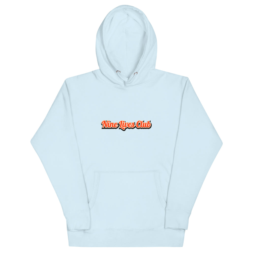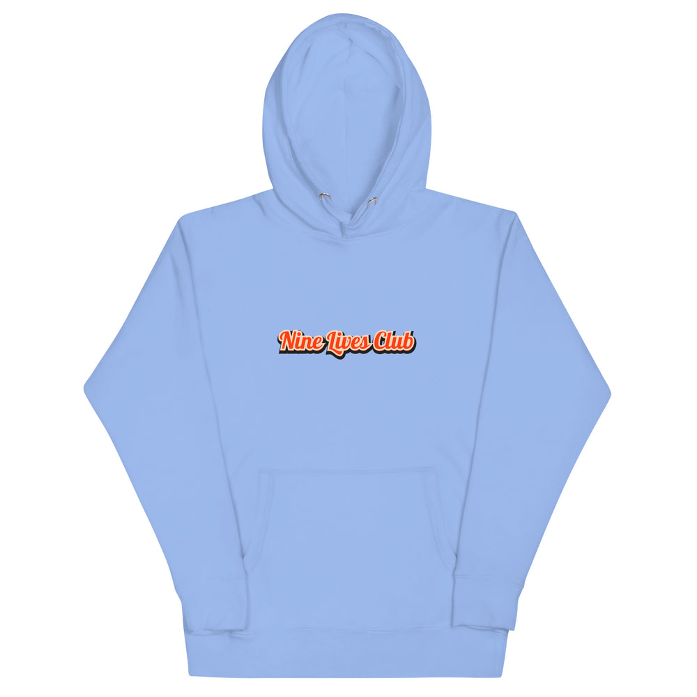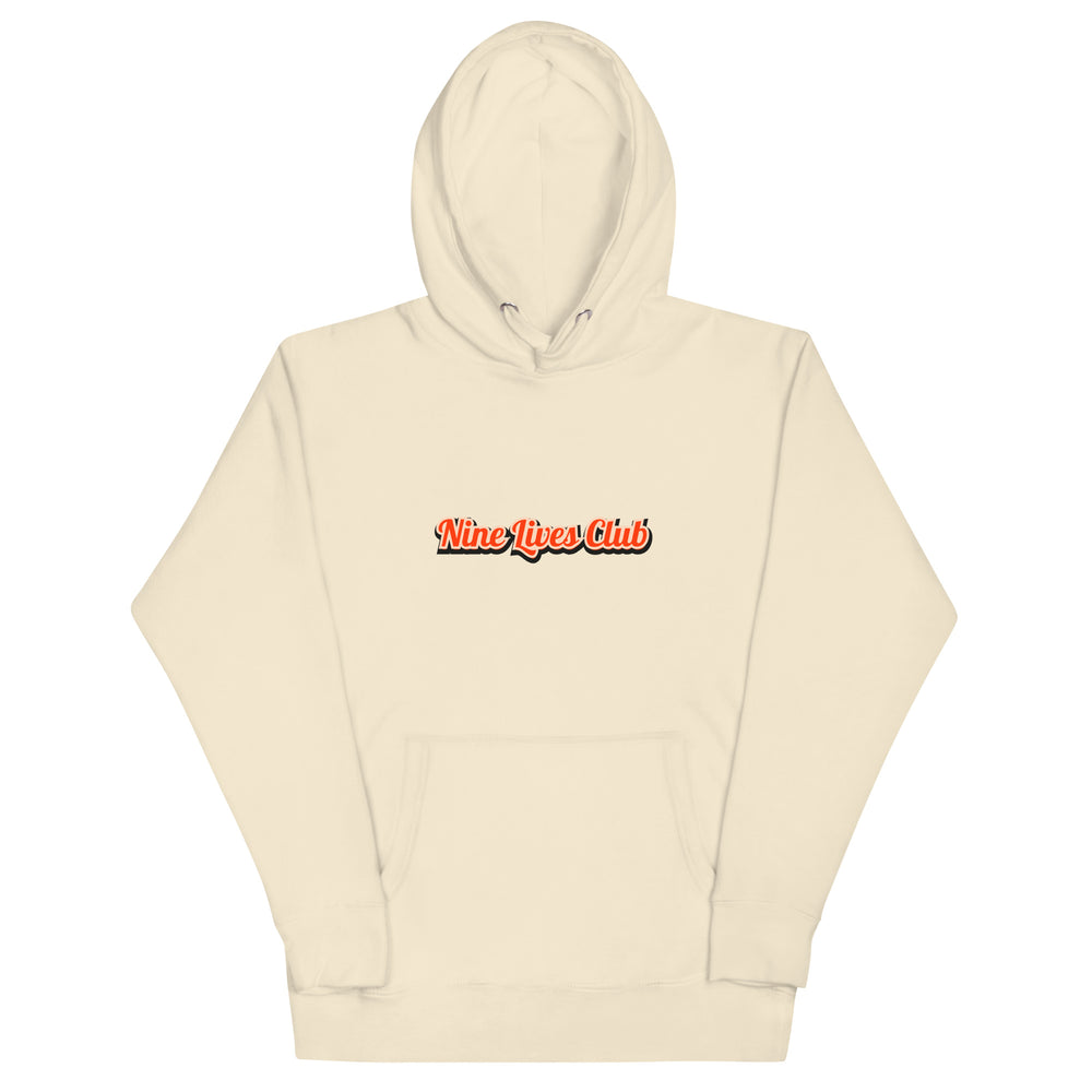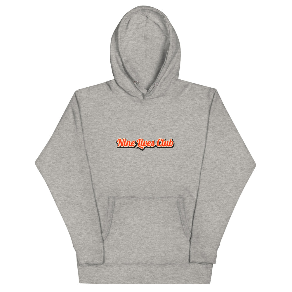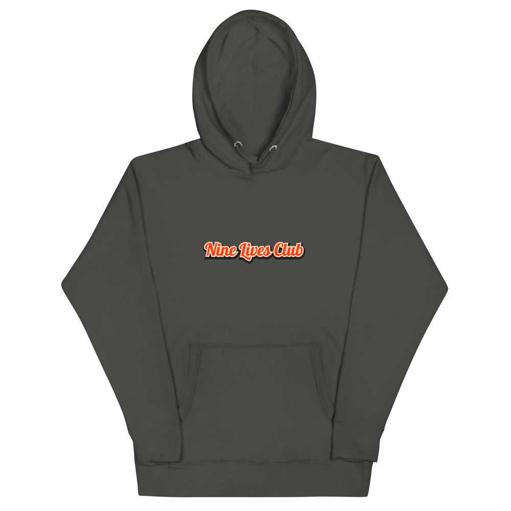 Nine Lives Club Cat Hoodie – Funny Graphic Hoodie for Cat Lovers, Unisex Pullover with Front & Back Print