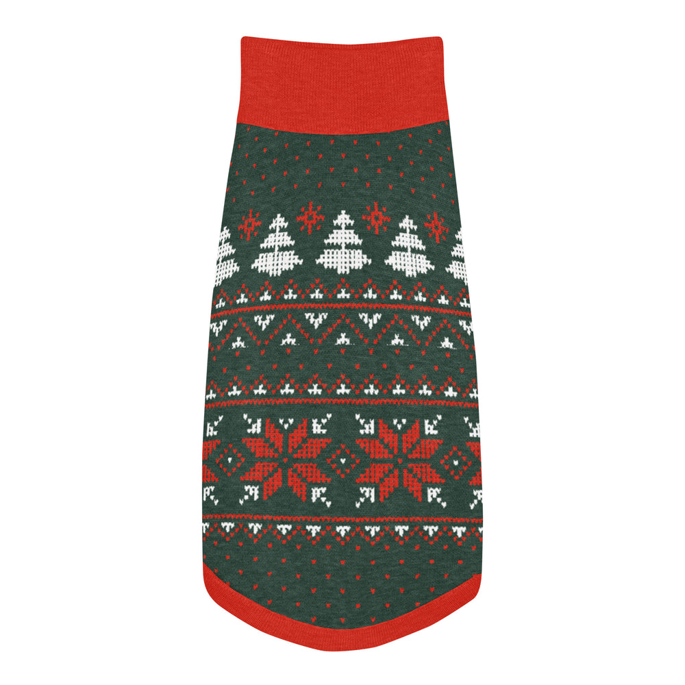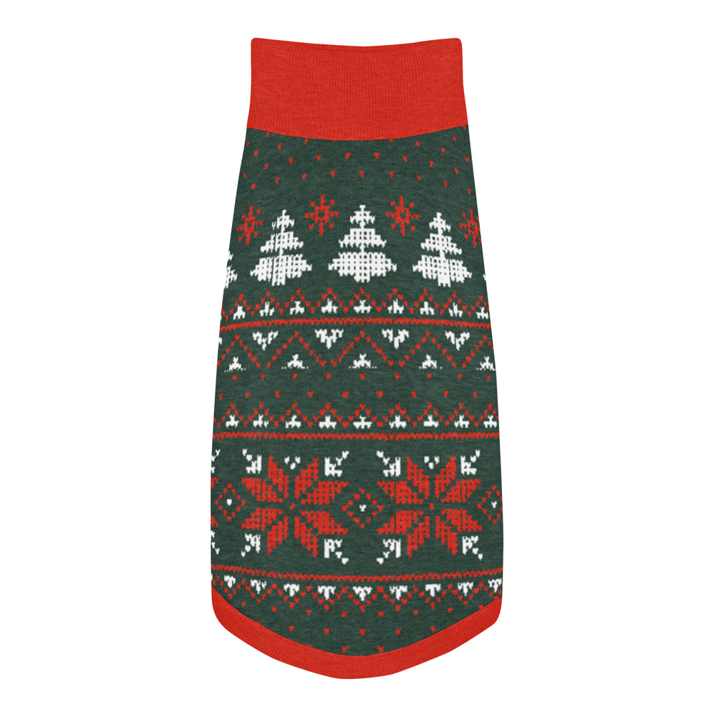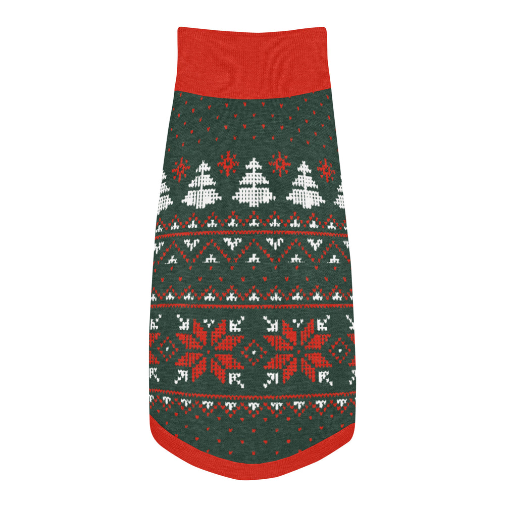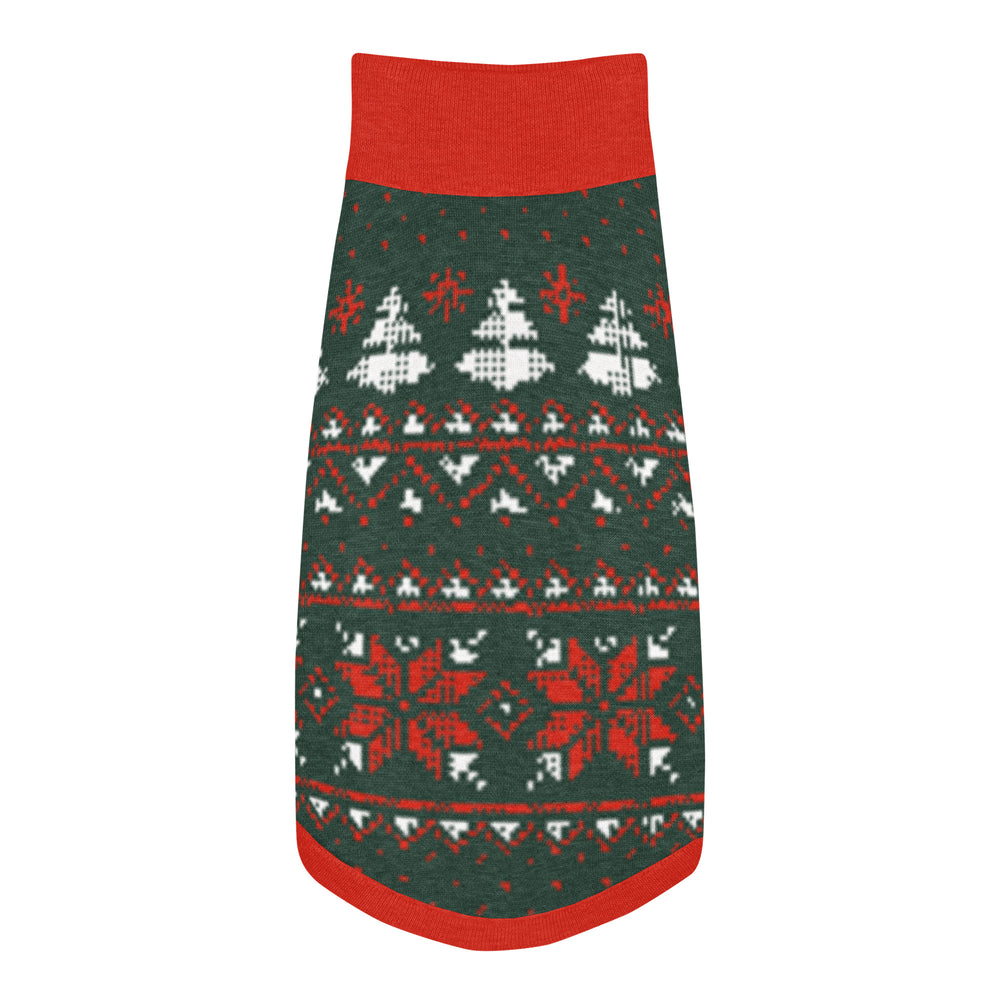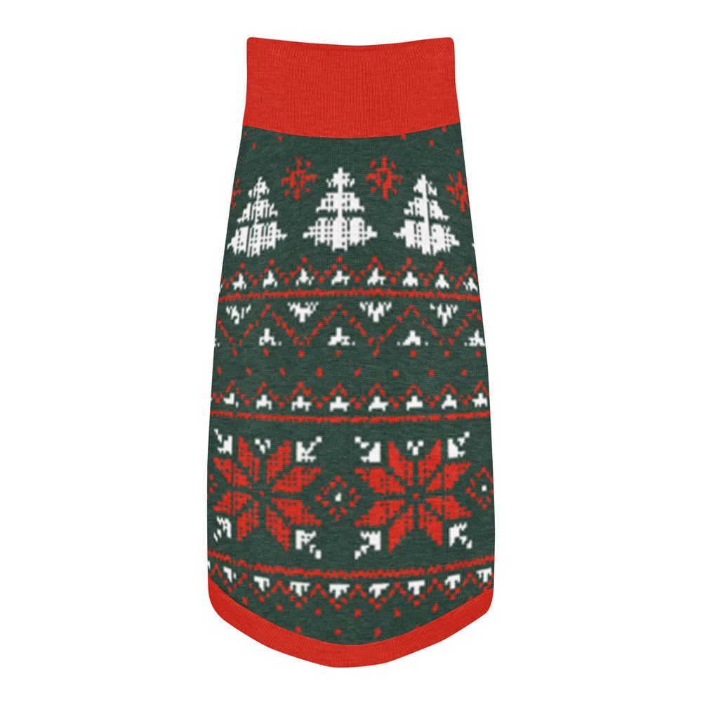 Crafted with soft, breathable knitted fabric, this sweater keeps your dog warm during chilly winter walks while giving them a picture-perfect seasonal look. The traditional color palette and detailed white motifs make it ideal for Christmas photos, parties, matching family outfits, and gifting.