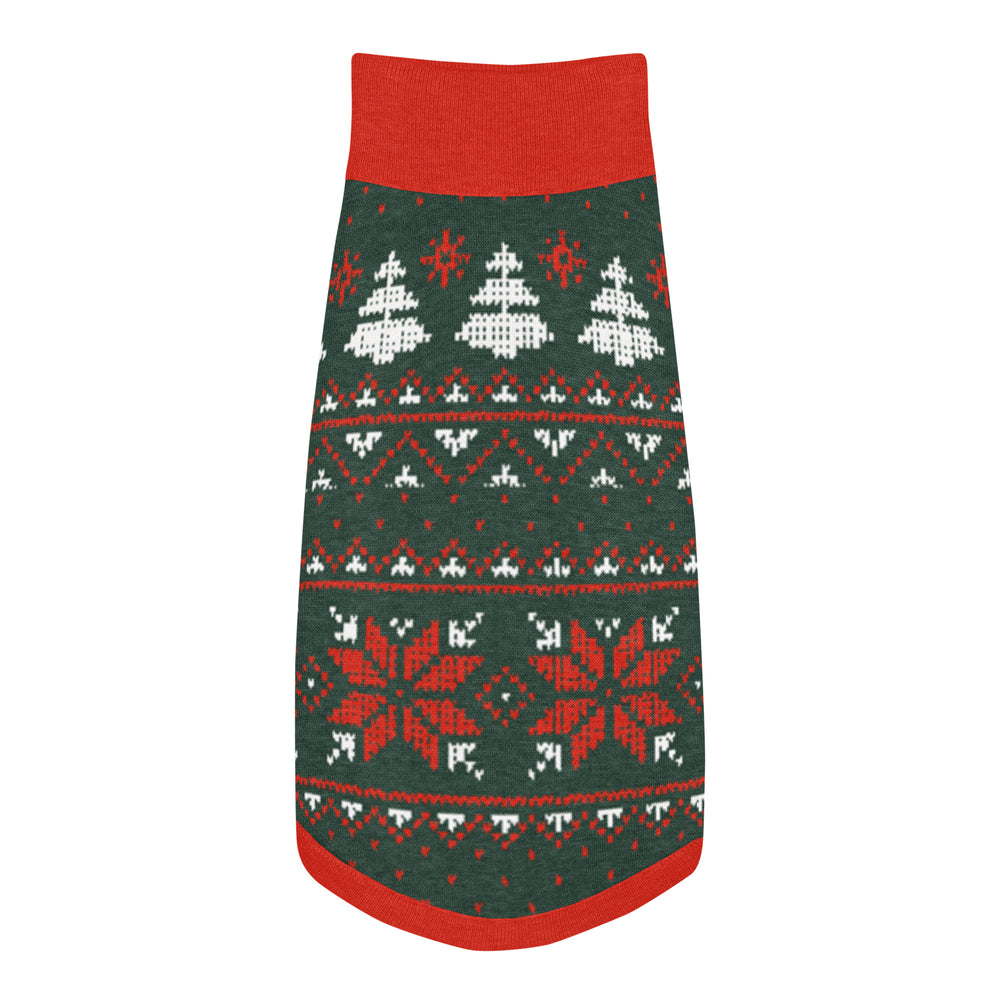Traditional Red & Green Christmas Dog Sweater | Classic Fair Isle Pattern